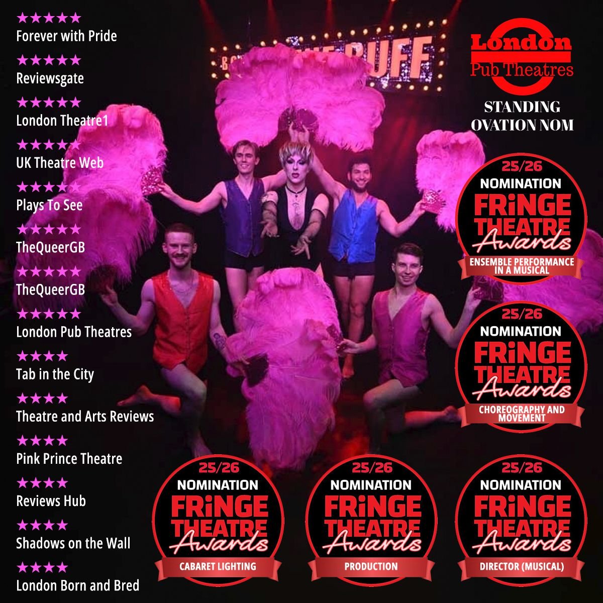 Script and songs are written by Chris Burgess, a prolific writer for theatre, TV and radio. Boys in the Buff, directed by Robbie O’Reilly, who in addition to extensive performing credits in original London and European theatre casts of shows such as Chicago, Cabaret and the RNT’s Anything Goes has choreographed many critically acclaimed London shows.